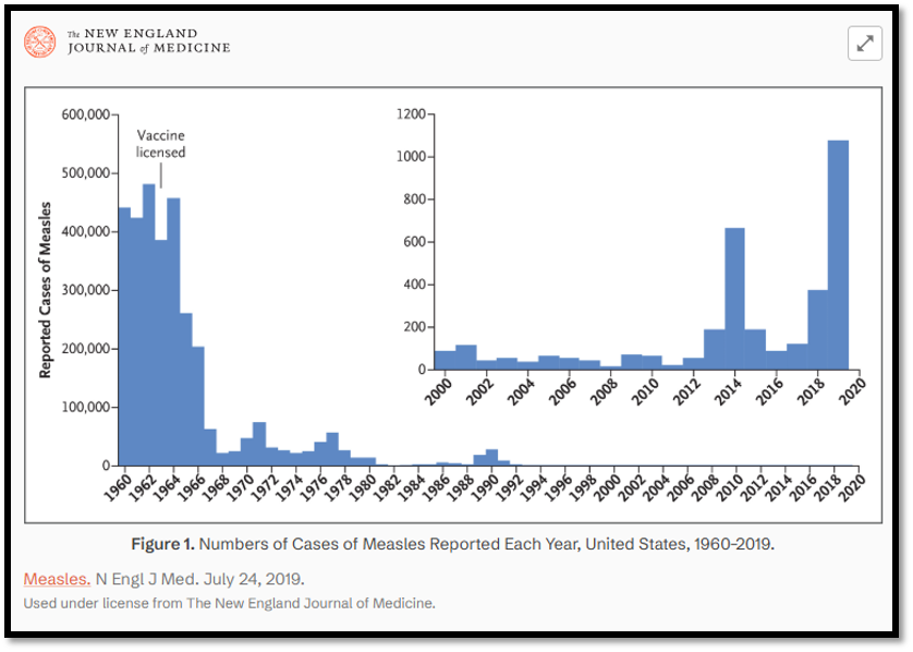 - Measles. Strebel PM, Orenstein WA. The New England Journal of Medicine. 019;381(4):349-357. doi:10.1056/NEJMcp1905181.